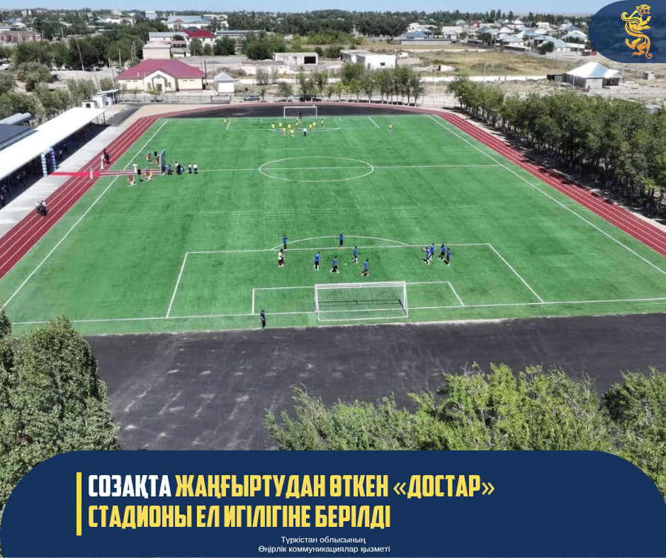 СОЗАҚТА ЖАҢҒЫРТУДАН ӨТКЕН «ДОСТАР» СТАДИОНЫ ЕЛ ИГІЛІГІНЕ БЕРІЛДІ