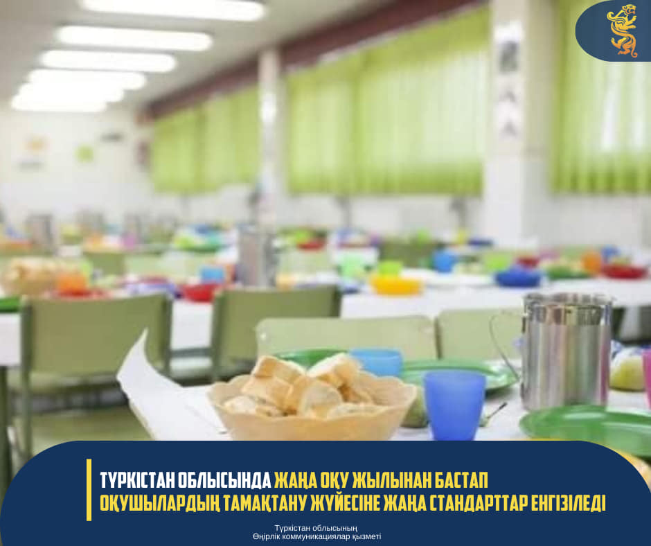 ТҮРКІСТАН ОБЛЫСЫНДА ЖАҢА ОҚУ ЖЫЛЫНАН БАСТАП ОҚУШЫЛАРДЫҢ ТАМАҚТАНУ ЖҮЙЕСІНЕ ЖАҢА СТАНДАРТТАР ЕНГІЗІЛЕДІ