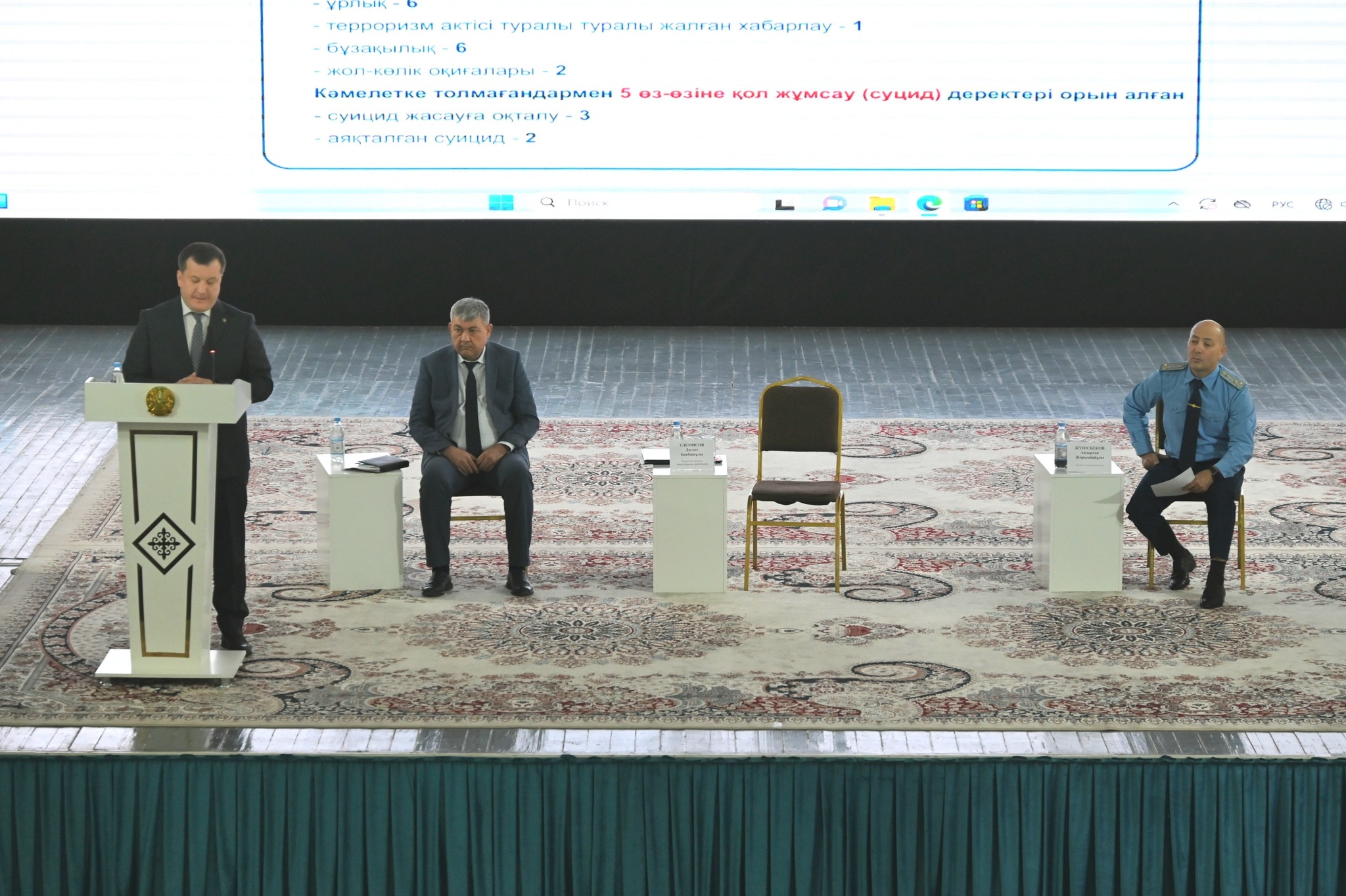«Қауіпсіз балалық шақ» концепциясының алгоритімі аясында жиынға қатысушылар кәмелетке толмағандар арасында орын алуы ықтимал қылмыс пен құқық бұзушылықтың алдын алу, түнгі уақыттарда ата-анасынсыз үй-жайынан тыс жерлерде, нақтырағы, компьютерлік ойынханалар мен мейрамханаларда болуларына тыйым салу, кәмелетке толмағандар арасында күш көрсету, әлімжеттік, өз-өзіне қол жұмсау (суицид), ерте жүктілік фактілерін болдырмау, бала тәрбиесіне немқұрайлы қарайтын ата-аналарды анықтап, жүргізілетін тиісті жұмыстарды пысықтау мәселелері бойынша еркін форматта пікір алмасты.