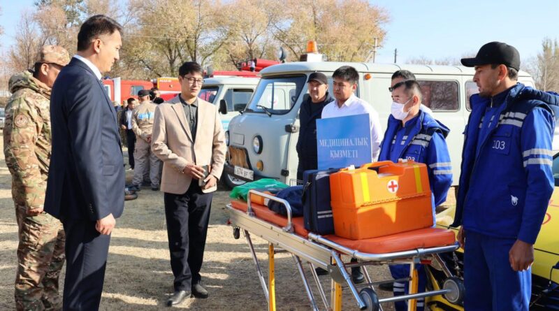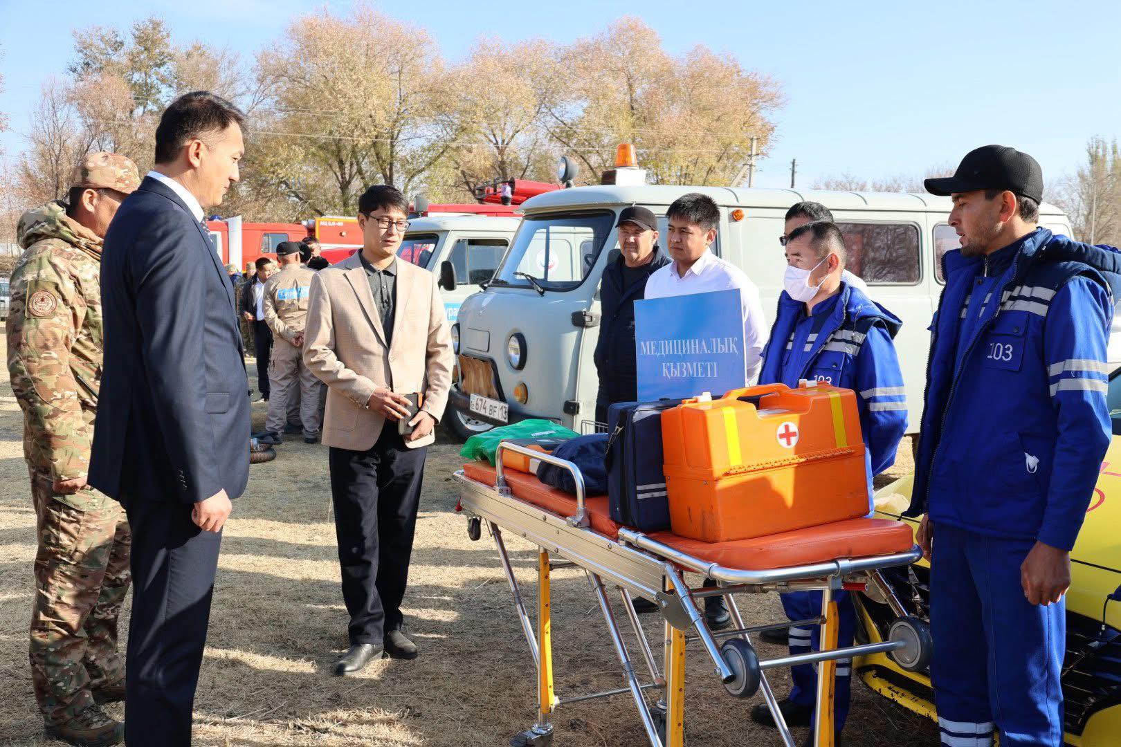 Аудан әкімі оқу-жаттығу барысын бақылап, тиісті қызметтердің үйлесімді іс-қимылына жоғары баға берді.