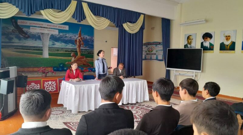 Кездесу барысында жасөспірімдер арасындағы құқықбұзушылық, әлімжеттік, сабақтан себепсіз қалу және беймезгіл уақытта көшеде жүрудің жауапкершілігі туралы ақпарат берілді.
