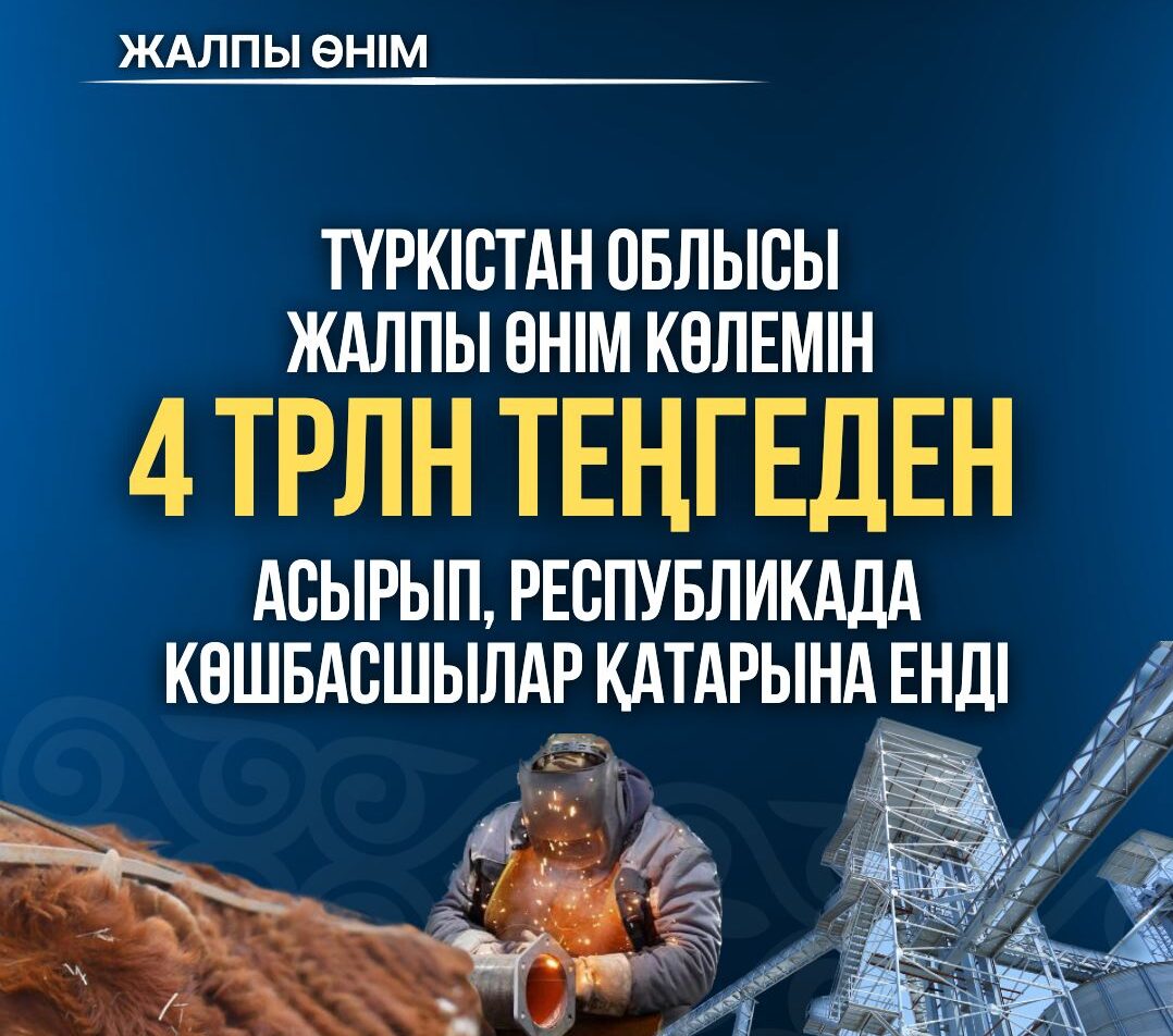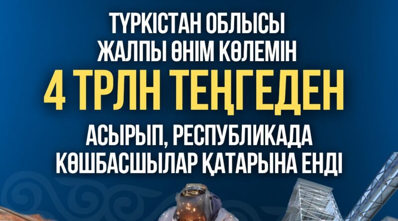 Түркістан облысы жалпы өнім көлемін 4 трлн.теңгеден асырып, республикада көшбасшылар қатарына енді