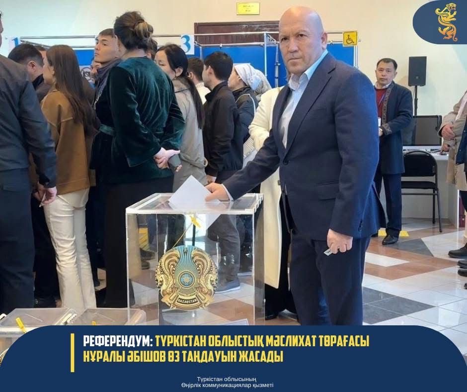 РЕФЕРЕНДУМ: ТҮРКІСТАН ОБЛЫСТЫҚ МӘСЛИХАТ ТӨРАҒАСЫ НҰРАЛЫ ӘБІШОВ ӨЗ ТАҢДАУЫН ЖАСАДЫ
