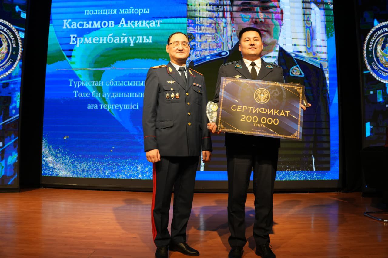 Республика көлемінде тергеушілер арасында ұйымдастырылған «Үздік тергеуші» байқауы өз мәресіне жетті. Аталған байқауда Түркістан облысы Полиция департаментінің намысын қорғаған Төлеби ауданы полиция бөлімінің аға тергеушісі Ақиқат Қасымов жүлделі ІІІ орынға ие болды. Ол облыс атынан жалғыз қатысып, жоғары кәсіби шеберлігі мен біліктілігін көрсете білді.